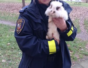 Wczoraj, o godzinie 14:50, strażnicy z Animal Patrolu udali się na ulicę Słubicką po zgłoszeniu dotyczącym… królika. Z informacji przekazanych dyżurnemu Centrum Kierowania i Monitoringu Straży Miejskiej Wrocławia wynikało, że na klatce schodowej jednego z budynków miał przebywać miniaturowy królik. Po przybyciu na miejsce funkcjonariusze nawiązali kontakt telefoniczny z osobą zgłaszającą. Informacje potwierdziły się, na klatce schodowej znajdował się biało – brązowy królik miniaturka. Zwierzę było w dobrej kondycji, bez oznak zaniedbania i wyjątkowo przyjaźnie nastawione do człowieka. Strażnicy podjęli próbę ustalenia właściciela. Mimo rozmów z mieszkańcami nikt nie potrafił wskazać, skąd królik mógł się tam wziąć, ani do kogo należy.